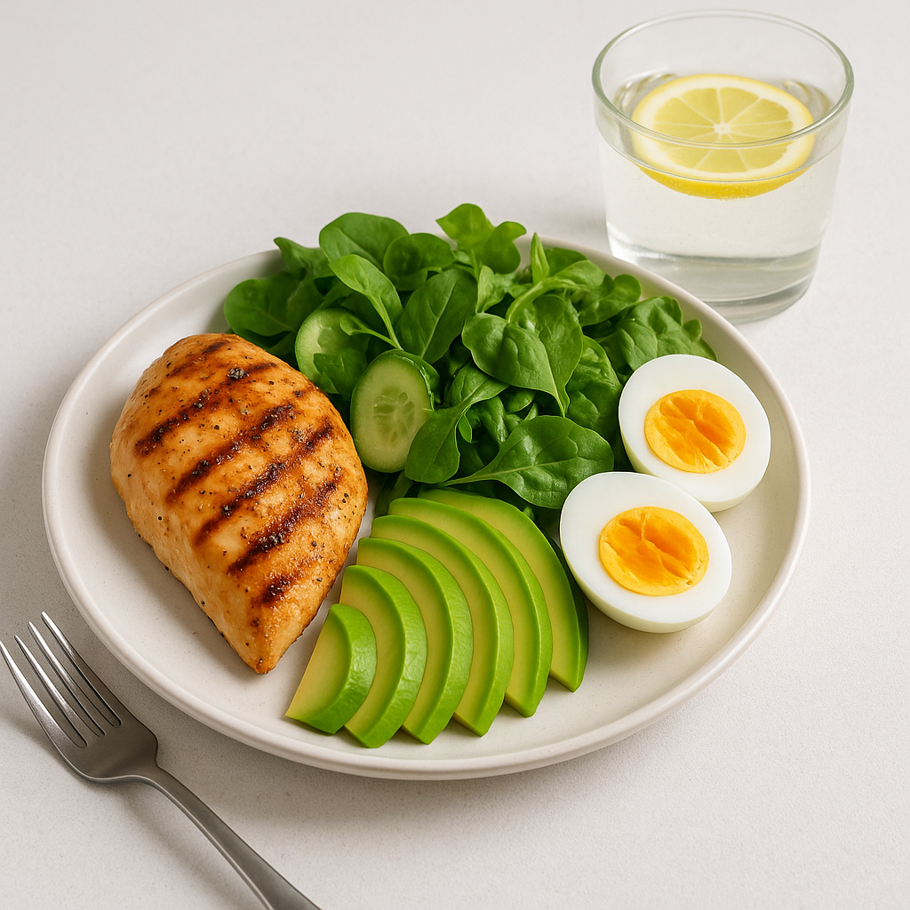닭가슴살 100g + 신선한 채소 샐러드 + 아보카도