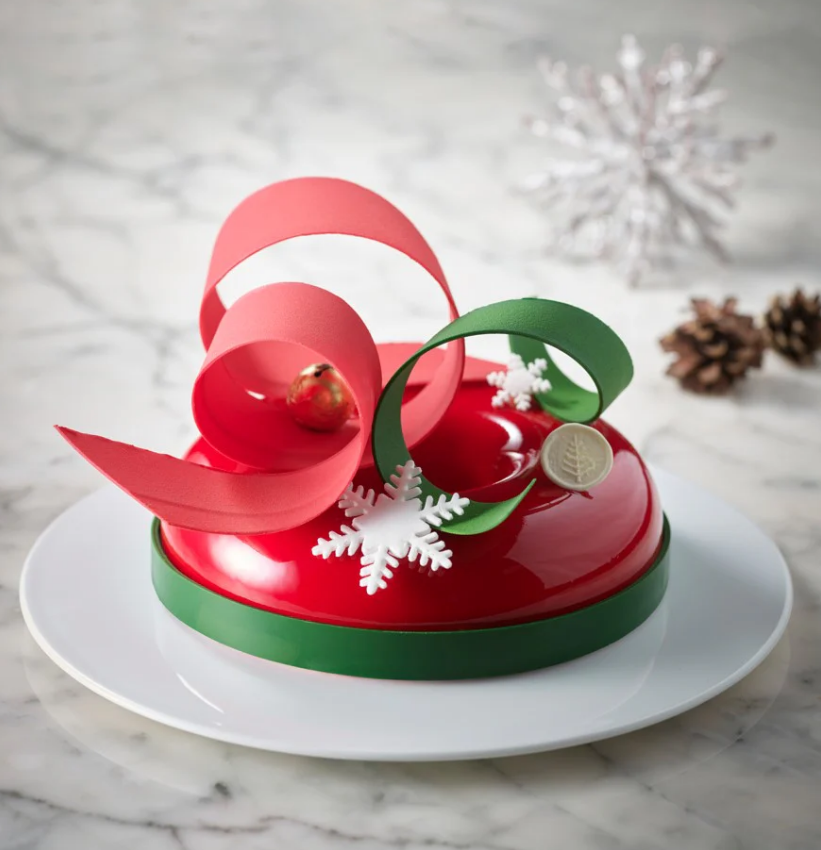 - 추천 케이크: 다크 초콜릿과 산타 모양의 딸기 무스 케이크.